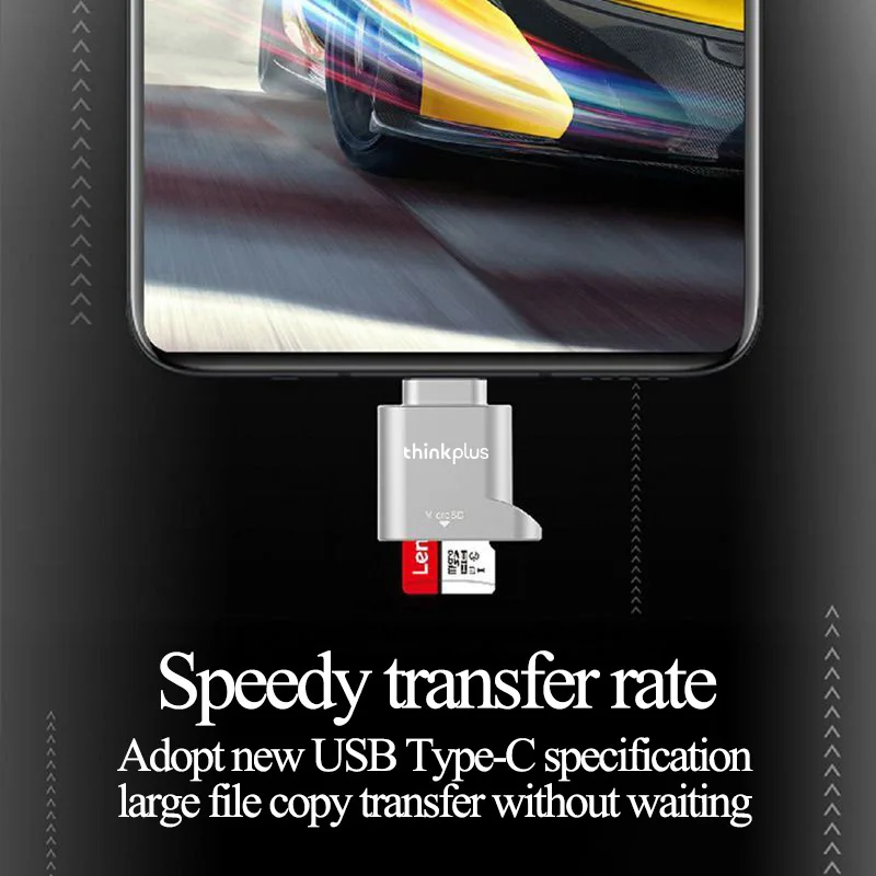 Lenovo Micro SD Card Reader, USB C to SD Card Reader, Type C TF Memory Card Reader with USB C to USB Adapter