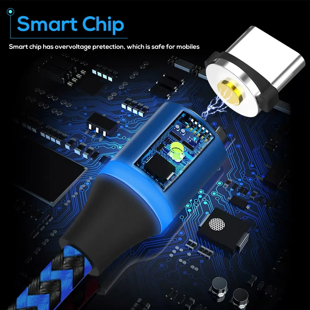 3 in 1 magnetic charging cable, TOPK 360 ° rotation magnetic phone charger cable with LED light compatible with micro USB, Type C and iProduct device